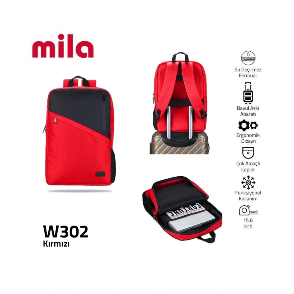 Classone 15,60 inch Uyumlu W300- Mila serisi Lenovo,Hp,Asus,Monster,Macbook,Mac Air Uyumlu Laptop , Notebook Sırt Çantası - Kırmızı