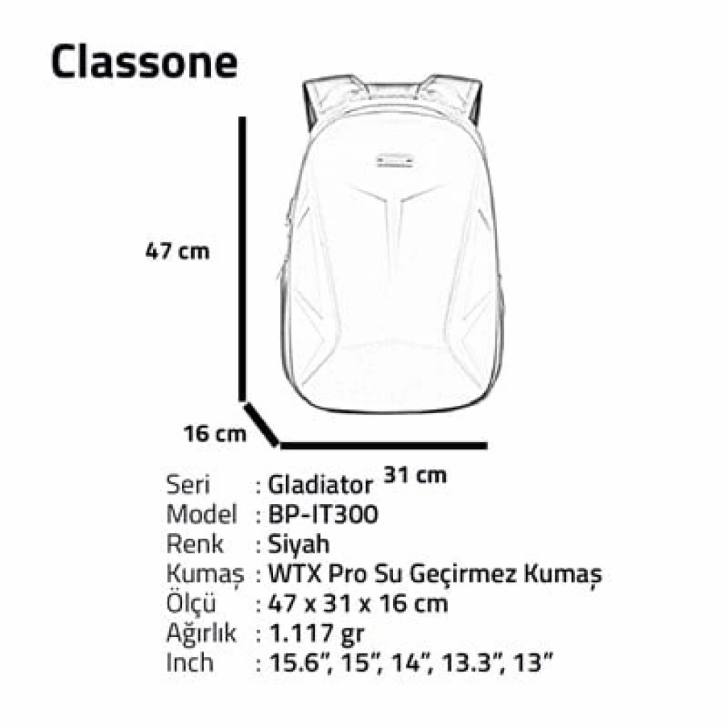 Classone BP-IT300 Gladiator Serisi 15.6 " Uyumlu Sırt Çantası