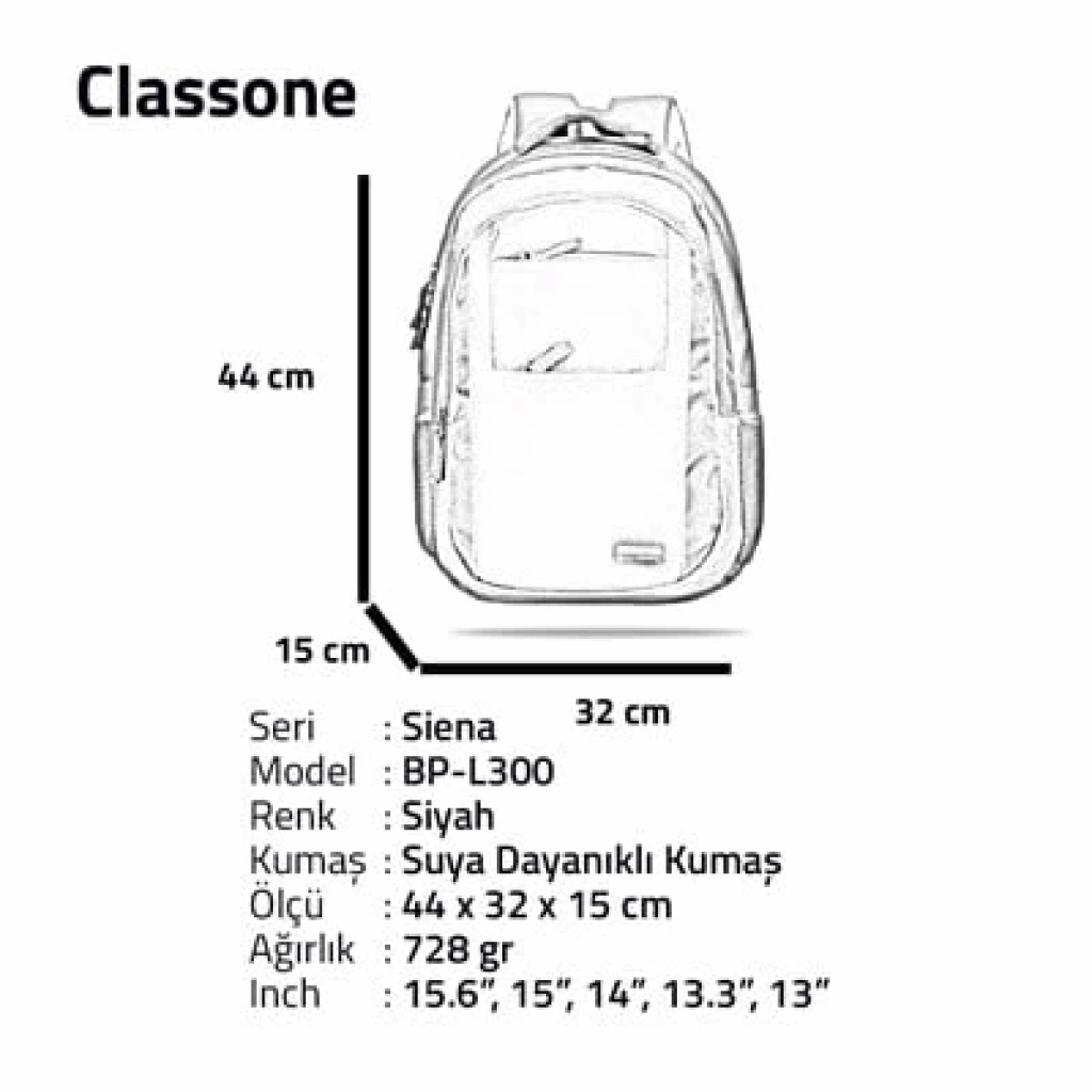 Classone BP-L300 WTXpro Su Geçirmez Kumaş Siena Serisi 15.6 inch Large Sırt Çantası