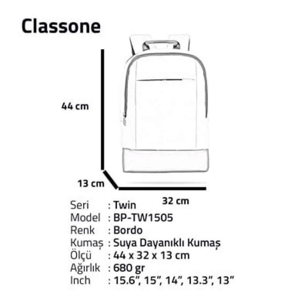 Classone TW1505 Twin Color 15.6 inch Notebook Sırt Çantası-Bordo