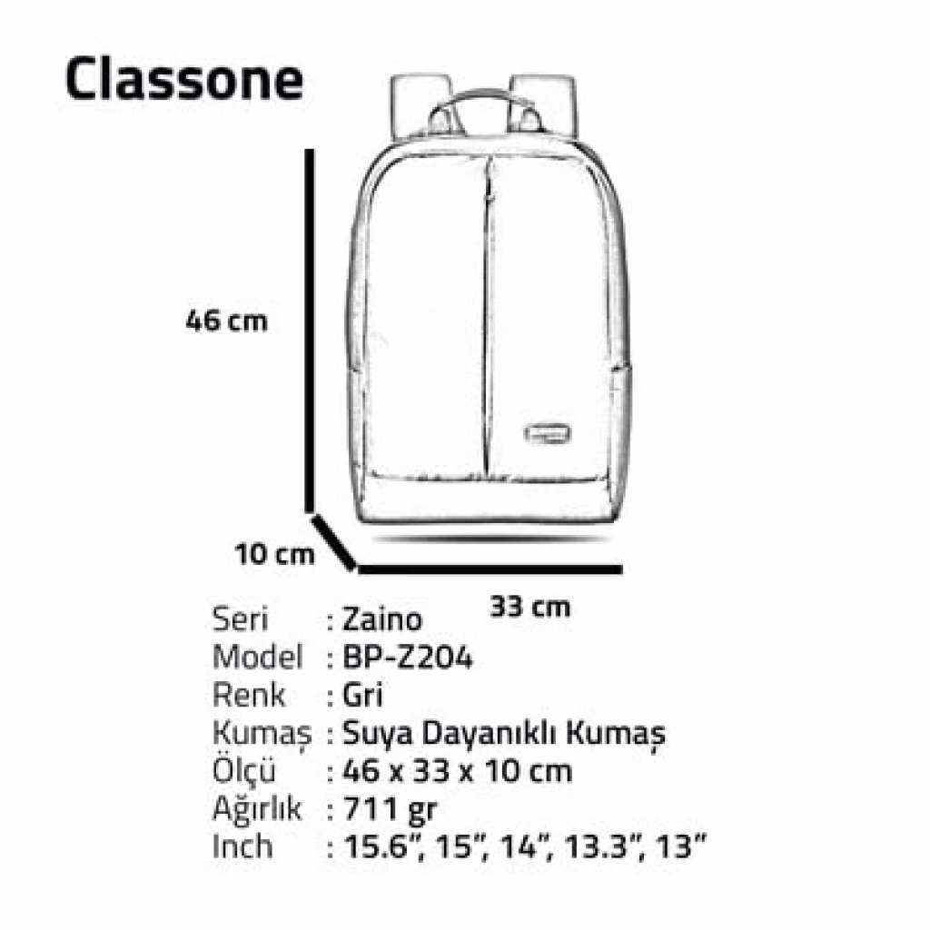Classone Z Serisi BP-Z204 15.6 Notebook Sırt Çantası -Gri